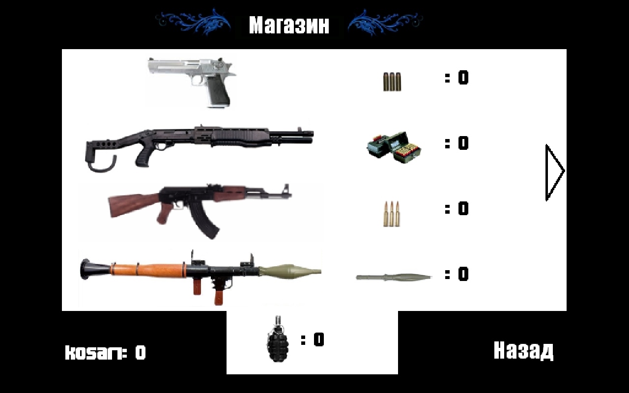 Косари - занимательная аркадная игра про Опасного Поцыка и его удивительном способе заработка. На первый взгляд все довольно просто, он должен собрать как можно больше денег (косарей), которые периодически падают ему с неба на голову. Но в ходе этого обогащения ему нужно отбиваться, точнее - навалять люлей другим любителям халявы, которой наш опасный не намерен делиться. Но в этом вопросе ему значительно поможет оружейный магазин, в котором присутствует приличный арсенал оружия, и приобрести нужно можно вот за эти самые косари. Помимо всего этого, вы сможете оценить острые выражения опасного, его всеми известный пенёк, тематическую музыку и даже смену погодных условий и многое другое...