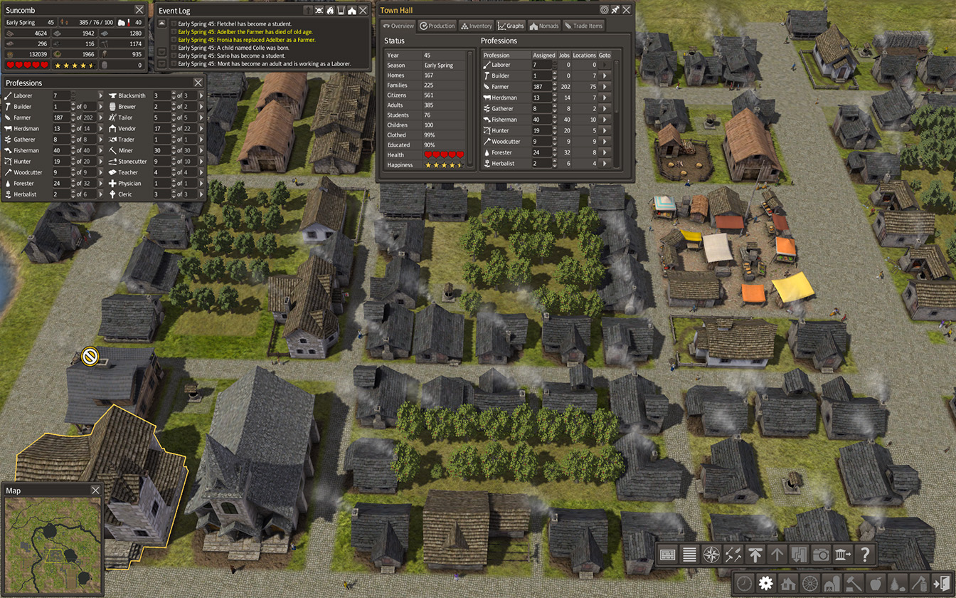 В игре есть 18 различных ремёсел для населения вашего города: начиная с фермером и охотников, заканчивая кузнецами, учителями и целителями. В игре не будет универсальной стратегии - объём ресурсов на картах будет отличаться. Игрок может высаживать леса заново, строить шахты для добычи железа и карьеры для добычи камня, но подобная тактика будет означать уменьшение драгоценного места, необходимого для экспансии;