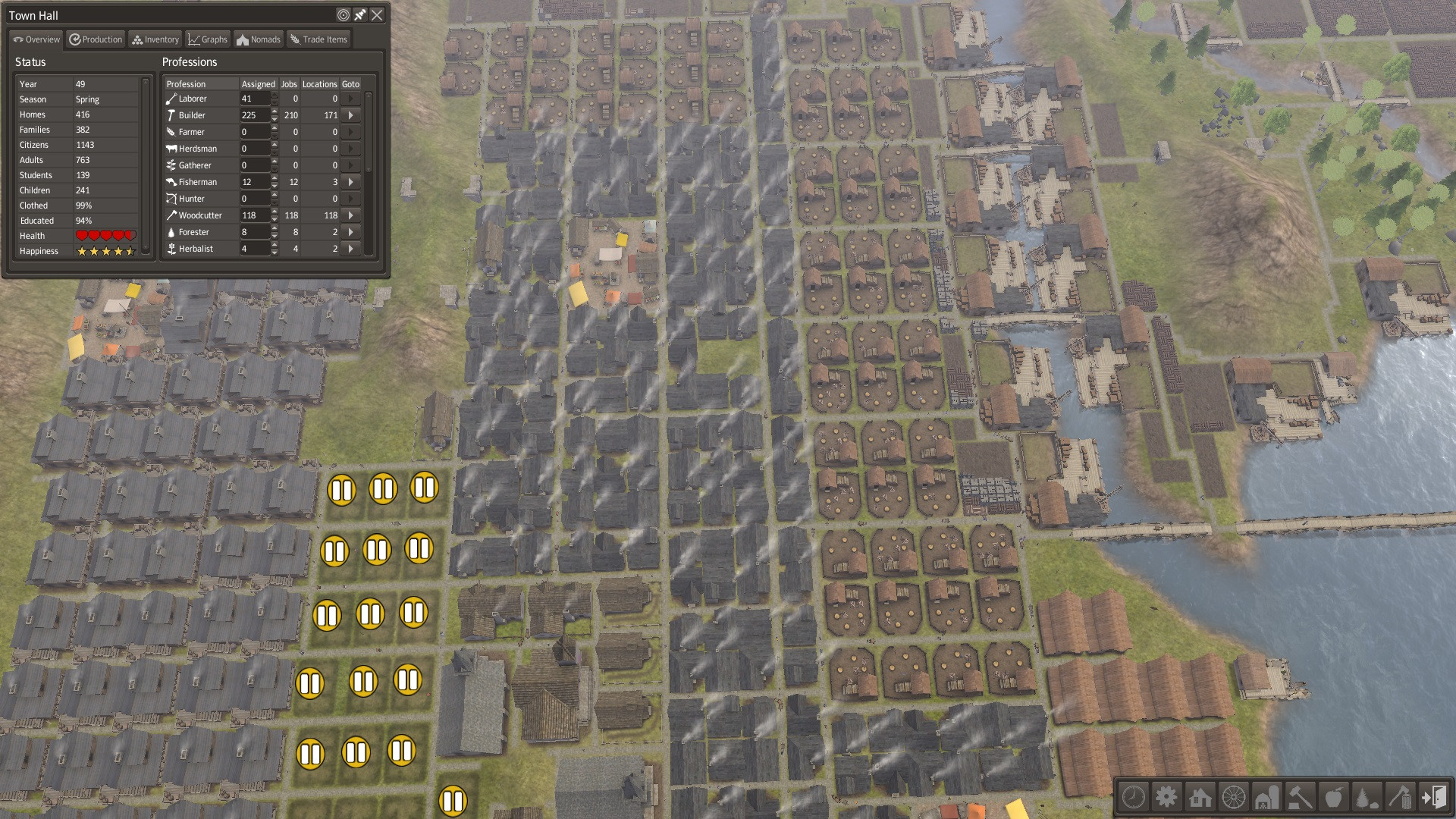 Переживать лютые зимы будет одним из основных испытаний для игрока. Для этого, вашим портным придётся шить для всех одежду, а людям - строить дома и заготавливать древесину на дрова. Но подобные удобства дадутся немалой ценой - вырубка леса снизит популяцию оленей, которые (напомню) служат источником пищи для населения. И хотя лесничии могут высадить новые деревья, лекарства для многих болезней могут найдены лишь в лесах, существовавших десятилетиями;