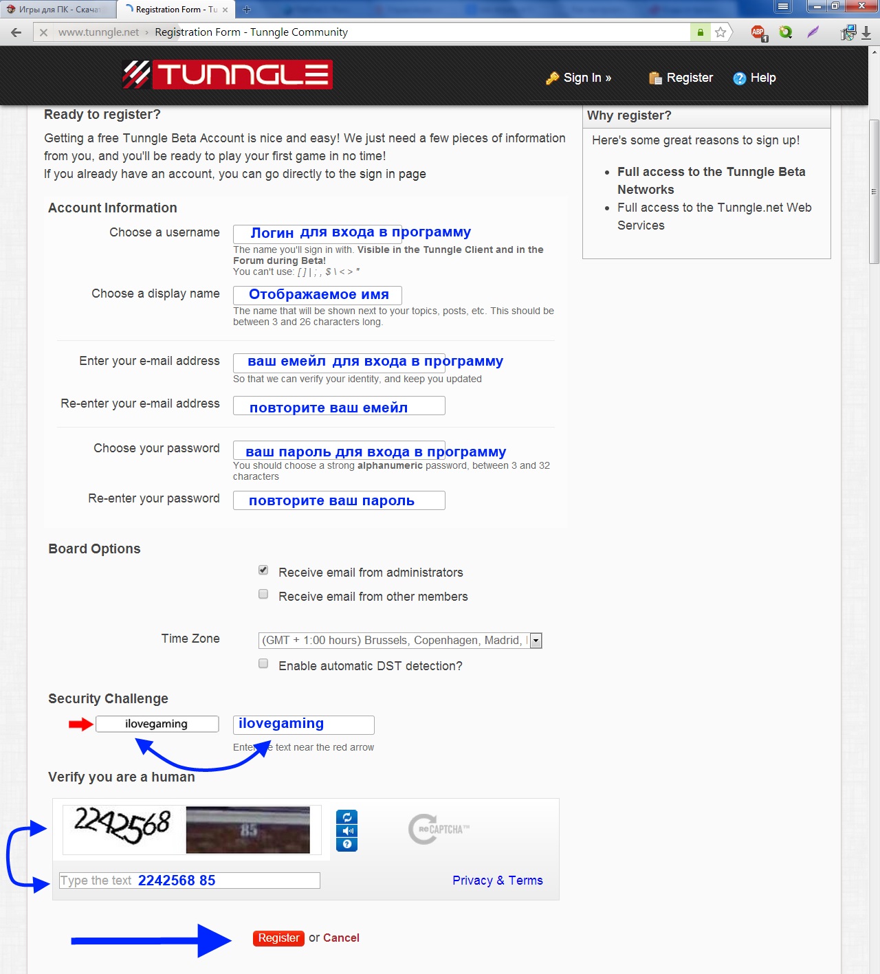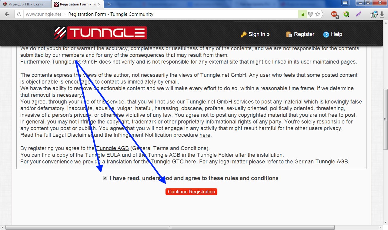 4.Регистрация на сайте Tunngle: