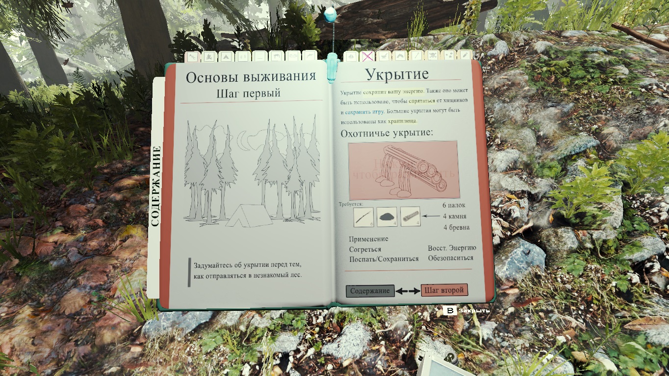 - Вам потребуется сделать укрытие или развести огонь, чтобы согреться ночью или во время шторма (если этого не сделать, буду отрицательные эффекты).
