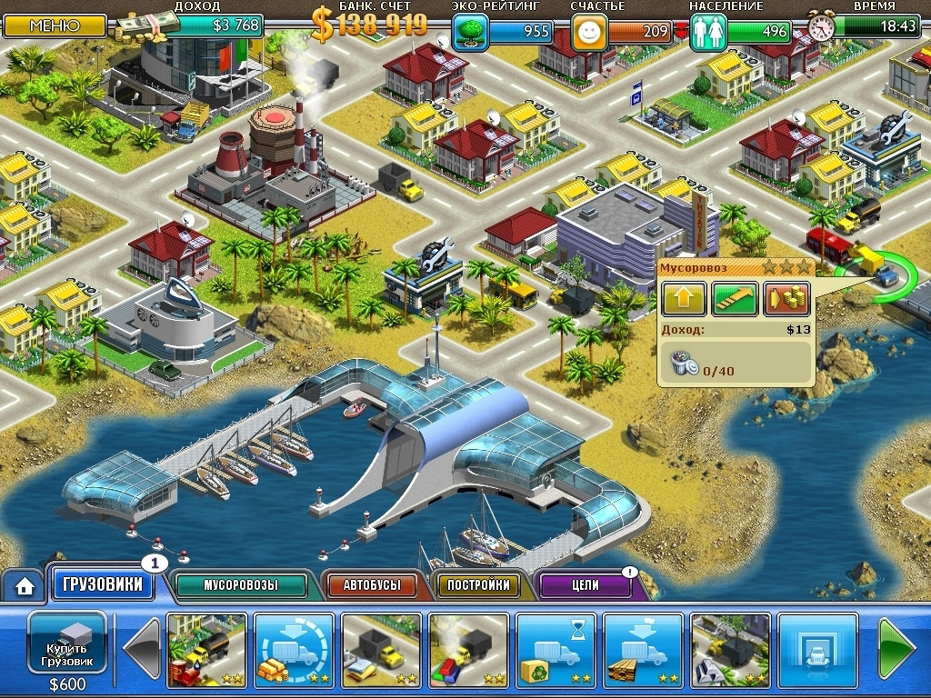 Виртуальный город - в увлекательном симуляторе «Виртуальный Город» перед вами поставлена серьезная задача – вам нужно создать в небольшом городе транспортную сеть, связывающую различные промышленные объекты. Для этого вам нужно приобрести грузовик, задать ему маршрут таким образом, что бы он перевозил продукцию из одного места в другое. Постепенно развивая компанию, вам станут доступны новые постройки и новые виды транспорта.